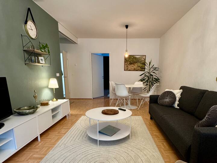 Თანამედროვე ერთსაძინებლიანი ბინა ქალაქის ცენტრთან