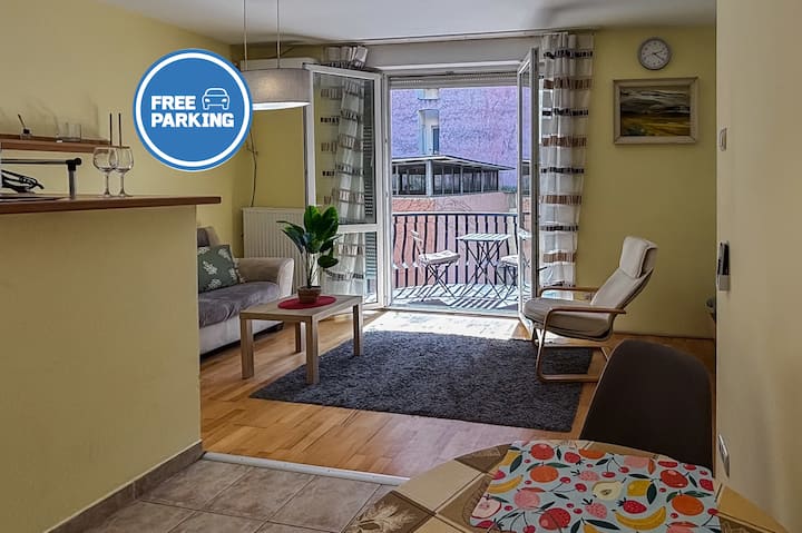 Თანამედროვე ბინა @ CityCenter ავტოფარეხითა და აივნით