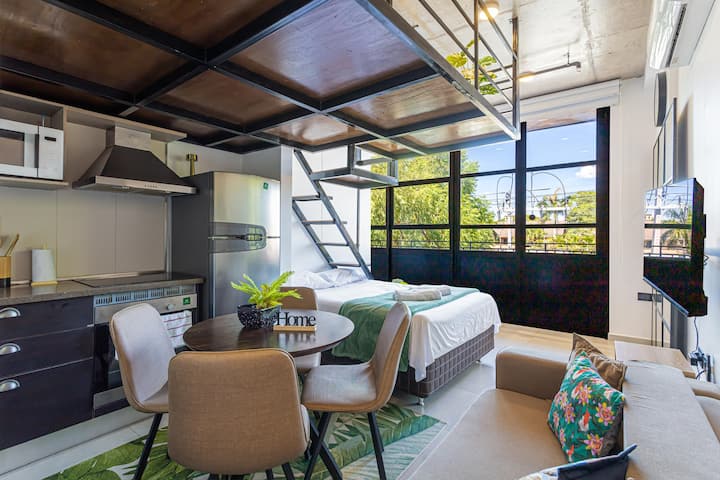 ლოფტი ხარის რაიონში, აშშ-ს საელჩოსთან ახლოს, აივნით და ავტოფარეხით