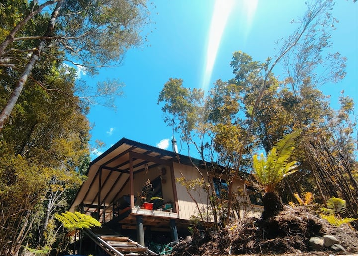 Ხის სახლი, რომელიც ოკეანეს გადაჰყურებს
