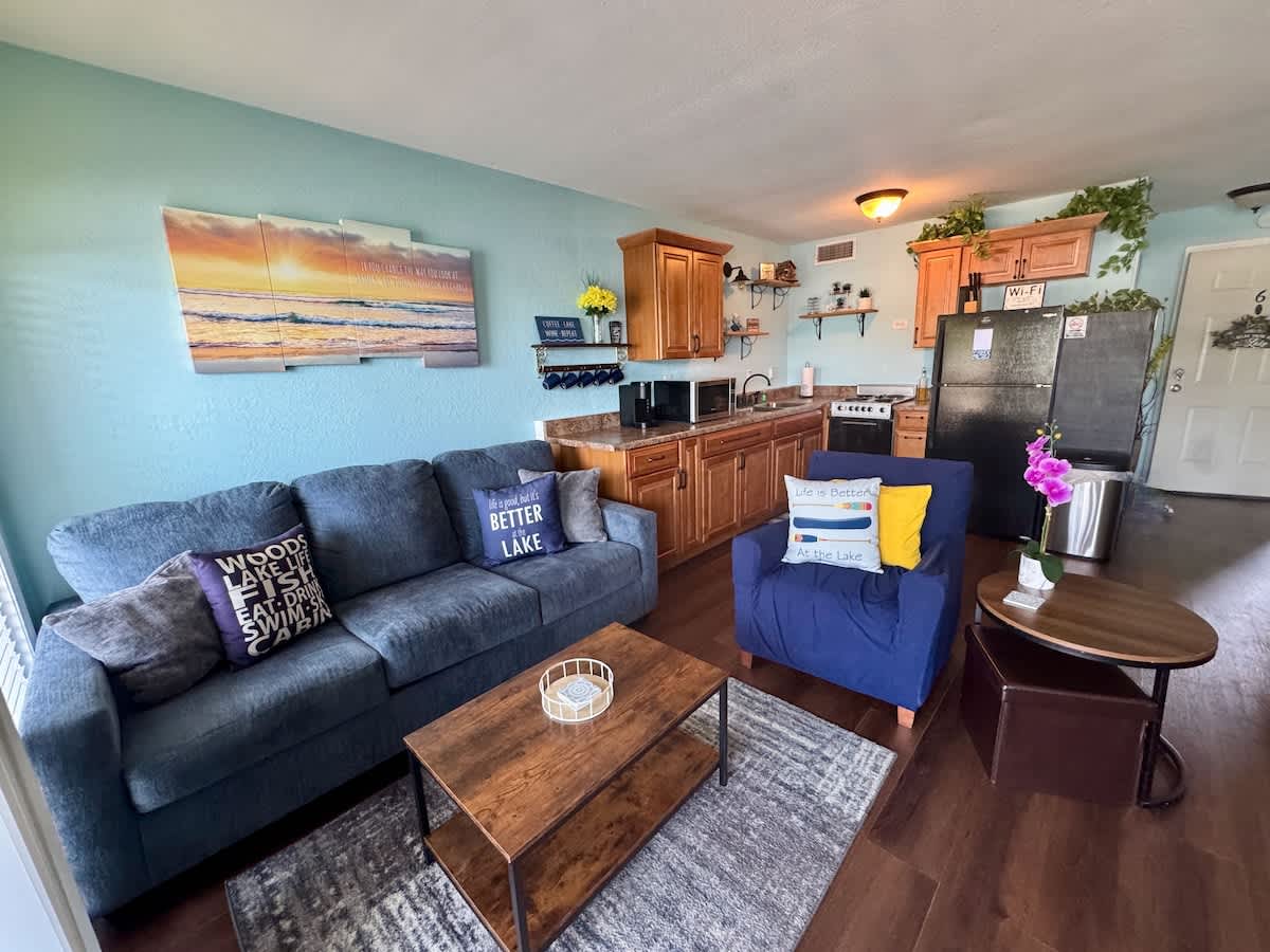 Your perfect winter getaway - Truly a guest favorite at the lake! If you're looking for the BEST VIEW of the main channel, youโve found it! 1 bedroom, 1.5 bath, top floor condo with a loft and HUGE private balcony on the water where you can nestle into a hammock and immerse yourself in views of summer sunsets and stargaze. Located on the desirable Horseshoe Bendโclose to restaurants, bars, golf courses, & more! The complex also has a pool with lake views (mid May-mid Sept) Boat+PWC slip May-Sept