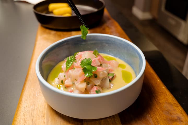 3 თამამი კურსი კოლუმბიური და პერუული არომატებით სეზონური, ადგილობრივი წარმოების ელემენტების გამოყენებით.