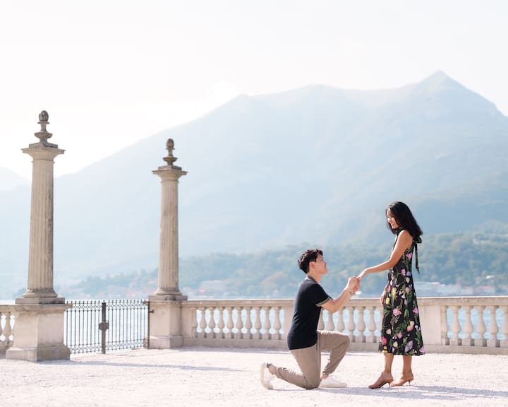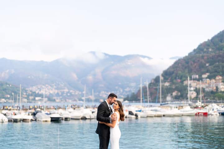 Ფოტოგადაღება კომოს ტბის, ვარენნასა და ბელაჯიოს გარშემო მზის ჩასვლის მომენტების ბედნიერების გამოსახატად. 200 ფოტო