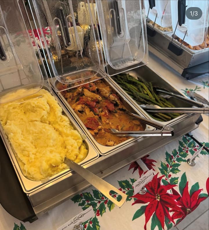 Შვედური მაგიდის სტილის ვახშამი დიდი ხალხმრავლობისთვის. Ვარიანტები მოიცავს რამდენიმე აპეტაიზერს, ძირითად კურსებს, გვერდებსა და დესერტებს.