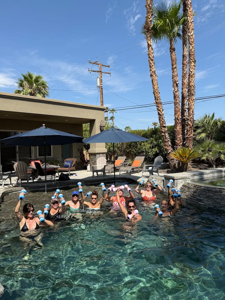 Ეს გაკვეთილი შეიძლება ჩატარდეს ნებისმიერ Airbnb-ზე და განკუთვნილია ფიტნესის ყველა დონისა და შესაძლებლობის ჯგუფისთვის. Გაცნობისა და გახურების შემდეგ ივარჯიშეთ სხეულის წონის ვარჯიშებითა და წინააღმდეგობის ვარჯიშებით Aqua Dumbbells-ის გამოყენებით. Ამას გარდა, მოქმედებს ბალანსისა და გადაადგილების წესები. Ეს გაკვეთილები ყველასთვის სახალისოა.