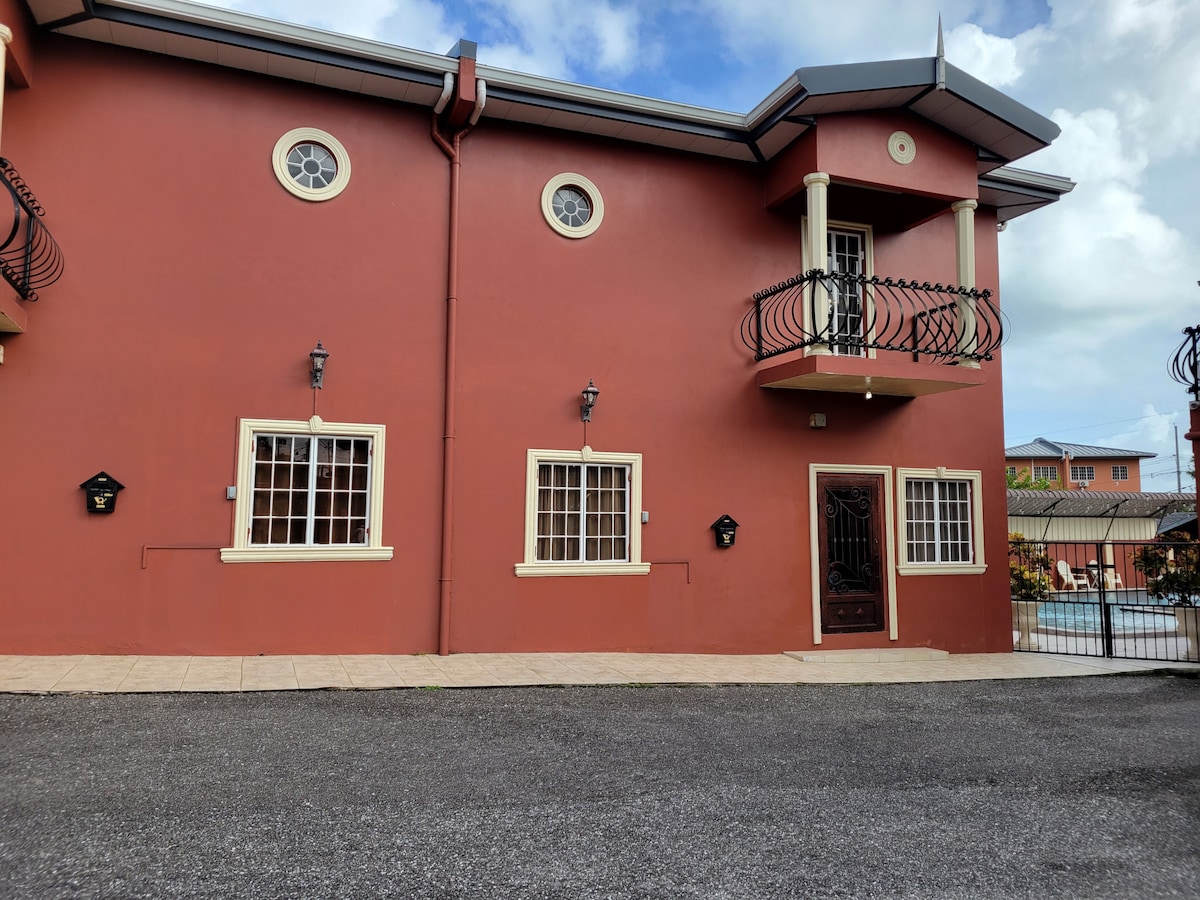 Memories are made in Trinidad. As you enter our home the feeling of high ceilings gives a rustic yet luxury feeling, living room, dining and kitchen all in one large area, family or couples enjoy a peaceful time here. Our heated pool offers the perfect spot for relaxation and rejuvenation. Daily workout in the gym or even movie night in the sunroom area. Minutes away from the mall, grocery, lots of restaurants and night life. Parking is also available and independent housekeeping.
