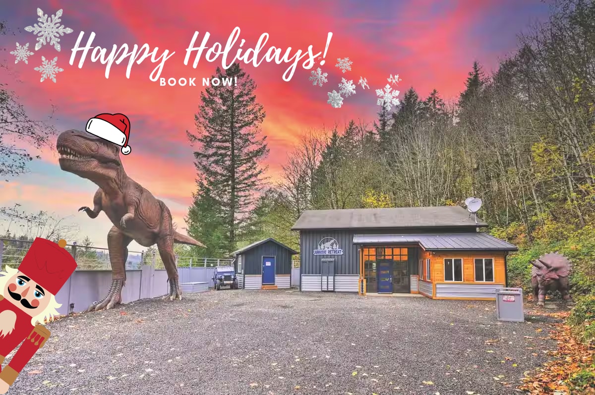 🏡 Welcome to Jurassic Retreat — A One-of-a-Kind Family Adventure Cabin! Escape to a dino-sized experience in the heart of nature — perfect for families, remote workers, or couples looking for something wildly unique. Our Jurassic-themed cabin blends prehistoric fun with modern comfort: soak in the private hot tub, bbq up a feast for your crew, or cozy up in the living room to watch the Jurassic Park movie collection on our 75" tv - with dino décor all around. Fur babies stay for FREE! 🐾