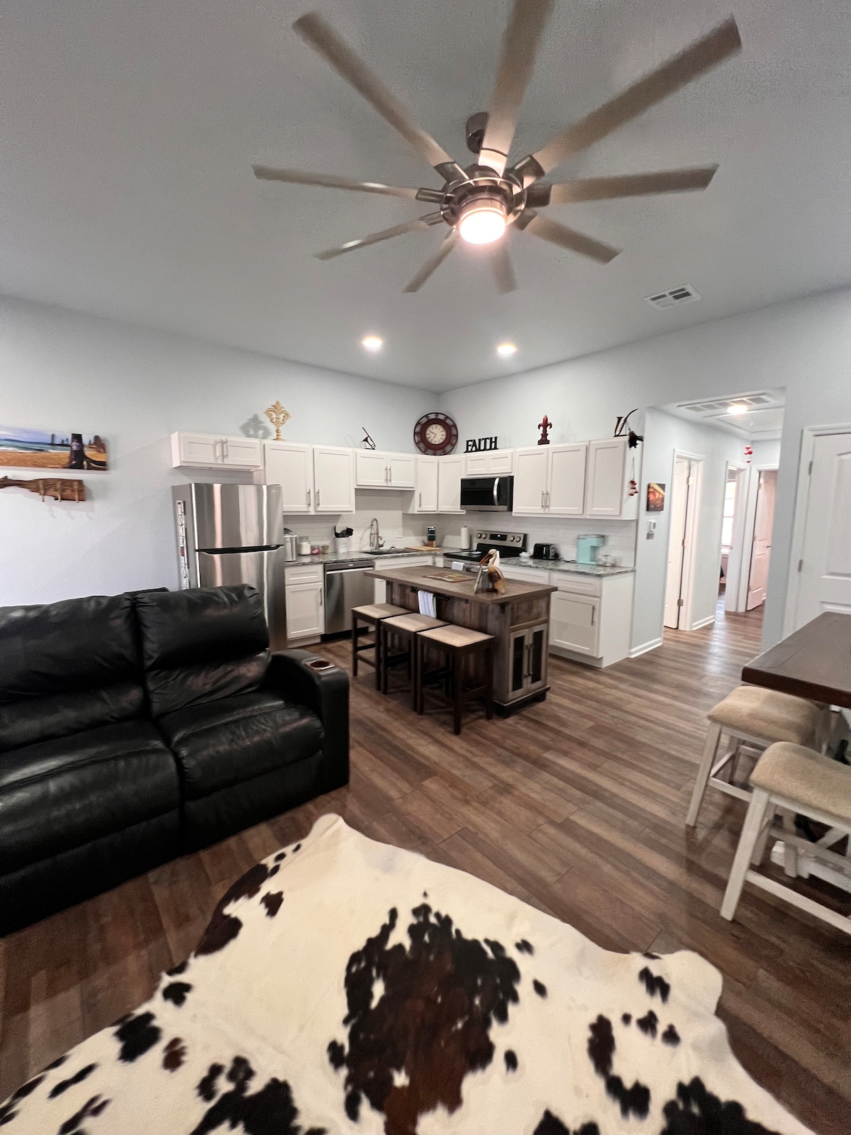 Ჩვენს პატარა საცხოვრებელში არის დისტანციური შესასვლელი და საკუთარი ვერანდა მზის ჩასვლისას დასაჯდომად და დასატკბობად. Დაახლოებით 550 კვ. ფუტი მრავალი საყოფაცხოვრებო პირობით. Დედოფლის ზომის საწოლი არის მერფი და შეიძლება დაიკეცოს მეტი სივრცე. Ასევე არის გასაშლელი საწოლი, ყველა თეთრეული უზრუნველყოფილია. Ამ ტიპის საწოლი საუკეთესოა ბავშვისთვის, მოზარდისთვის ან ზრდასრული ადამიანისთვის. Ჩვენ გვყავს ალპაკა, ემუ, თხა, ქათამი, იხვები, ინდაურები, ძაღლები და კატები. Საცხოვრებელში არის მაცივარი, მიკროტალღური ღუმელი, ტოსტერის ღუმელი, მოსართავი, ბლენდერი, ნიჟარა, ჭურჭელი.