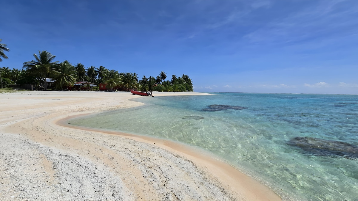 Ტიკეჰაუს მთავარ მოტუზე მდებარე ეს ბუნგალო, რომელიც ძალიან ლამაზი თეთრი ქვიშის პლაჟის პირას მდებარეობს, იდეალური ადგილია ყოველდღიური ცხოვრებისგან თავის დასაღწევად. Კაიაკები და ველოსიპედი უფასოა. Კრისტიანი აეროპორტში ჩასვლისთანავე აგიყვანთ და ძალიან კარგი რჩევები იქნება ტიკეჰაუში შემოთავაზებული ყველა ექსკურსიისა და აქტივობისთვის (ყვინთვა, მანტას სხივები, ფრინველთა კუნძული, მარჯნის ბაღი, ზვიგენები, დიდი თევზაობა...)