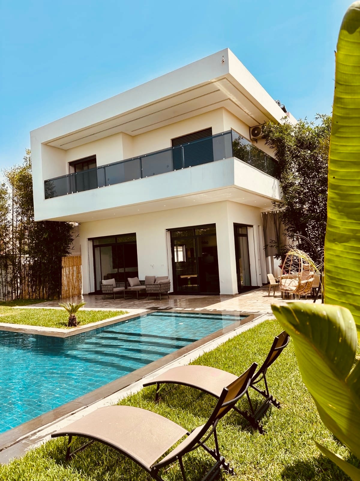 😍PERLE RARE FORMULE « APPARTEMENT 4chambres en résidence »•Capacité 7voyageurs +2sup POINTS FORTS : •JACUZZI 2 places •4 balcons •Toit terrasse privatisé •Matériel de sport •Internet Haut débit (fibre) •TV et IPTV dans les 4 suites •Climatisation et chauffage partout •Literie de qualité •Proche commodités/ à deux pas de l’Aéroport •Services externes : transfert aéroport, livraison de repas (Glovo), InDrive (Uber) •Options : petit déjeuner-plats marocains livrés-coursier-ménage