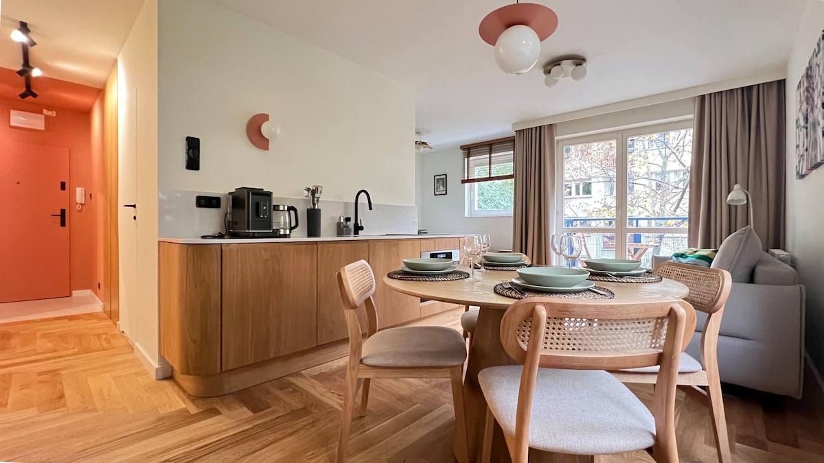 Აღმოაჩინეთ ვროცლავის მშვიდი ოაზისი, სადაც ბუნება ერთმანეთს ერწყმის ქალაქურ ცხოვრებას! Მდინარის პირას მდებარე ჩემი სასიამოვნო ბინა შესანიშნავი ხედებით გამოირჩევა. Დაისვენეთ პარკთან ახლოს, თუმცა იცხოვრეთ ქალაქის ცენტრთან ახლოს. Ტრანსპორტირებასა და ახლომდებარე ღირსშესანიშნაობებზე მარტივი წვდომა, როგორიცაა საუკუნის დარბაზი და მულტიმედია შადრევანი, სასიამოვნო სტუმრობას უზრუნველყოფს. Შეაბიჯეთ მყუდრო საკურთხეველში და დატკბით მზის სხივებით აღმოსავლეთისა და დასავლეთის ფანჯრებიდან და გაავსეთ საცხოვრებელი ბუნებრივი სინათლით.